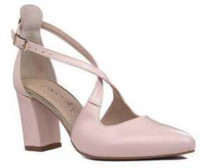 Różowe czółenka na słupku Kotyl 891 róż perła skórzne