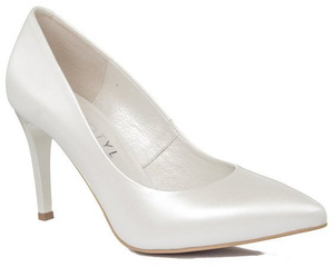 Białe szpilki ślubne Kotyl 7267 biała perła skórzane