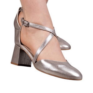 Srebrne czółenka skórzane na slupku Kotyl 5871 srebrny lico na ślub
