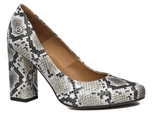 Srebrne czółenka na słupku skórzane Kotyl 7079 srebro lico