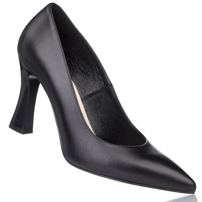 Czarne czółenka na kieliszku Kotyl 8501 skórzane szpic