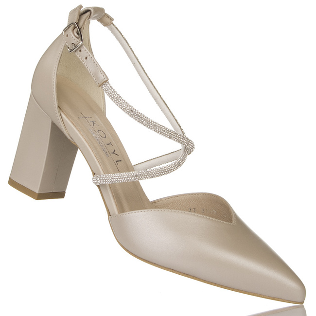 Beżowe szpilki skórzane z paskami Kotyl 7317 beż lico buty ślubne