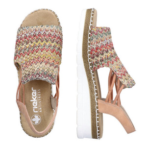 Sandały na platformie słomkowe Rieker V1241-90 multi wielokolorowe