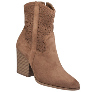 Ażurowe botki S. Barski HY51-125 beige beżowe zamszowe kowbojki