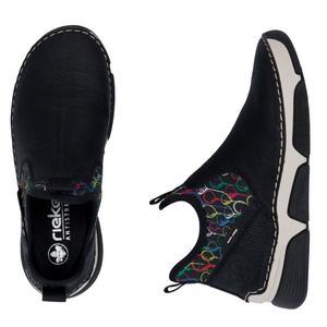 Czarne wsuwane botki damskie Rieker 45957-00 black baloniki skórzane