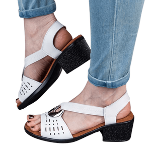 Białe czółenka na obcasie z okrągłym noskiem Kotyl 883 biała perła