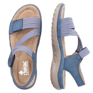 Sandały damskie na rzepy niebieskie Rieker 64870-14 blue z gumkami