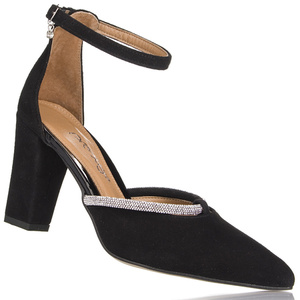 Czarne czółenka zamszowe na słupku Bioeco Arka 6942 skórzane z ozdobą