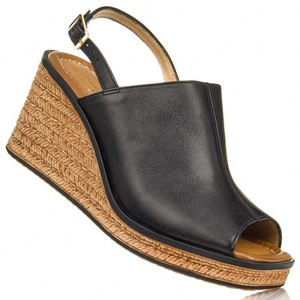 Sandały Maciejka 6098A na koturnie skórzane czarne