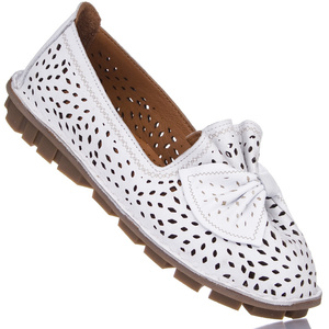 Ażurowe mokasyny z kokardą Artiker 56C0054 białe półbuty letnie