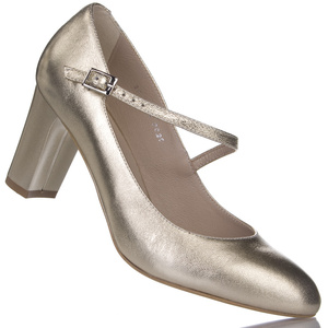Skórzane czółenka na słupku Kotyl 889 złote buty ślubne