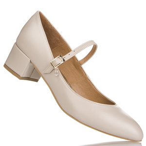 Czółenka z paskiem Prestige 2220 S-127 beżowe skórzane
