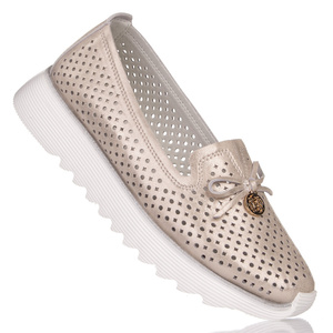 Złote mokasyny ażurowe damskie D&A Barski LR51-646 gold skórzane
