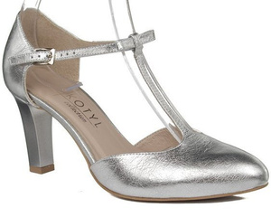 Niskie szpilki czółenka Kotyl 744 srebrne buty skórzane