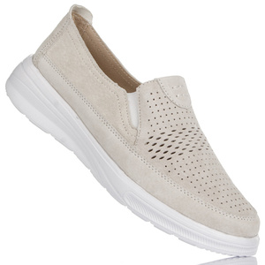 Zamszowe mokasyny damskie Filippo DP6751 BE beżowe na białej podeszwie