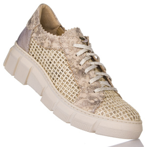 Beżowe sneakersy ażurowe na platformie S. Barski LR629 skórzane