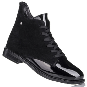 Czarne botki damskie Artiker 55C0787 skórzane podwójny zamek ciepłe
