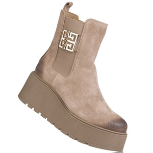 Botki na koturnie Hee 24750 zamszowe podeszwa na słoninie skórzane