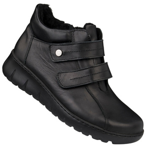 Skórzane Botki damskie na rzepy Helios 783/011 czarne na haluksy POLSKIE