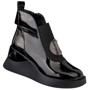 Lakierowane Botki damskie na koturnie D&A S.Barski MR52-104 czarne