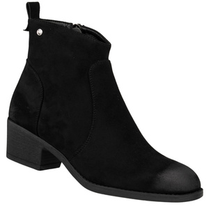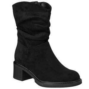 Zamszowe botki na obcasie damskie Potocki 25-51303BK czarne ocieplone