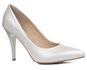 Skórzane szpilki damskie Kotyl 7297 perła lico buty na ślub