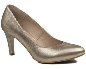 Złote czółenka na obcasie Kotyl 549 złoty ef skórzane