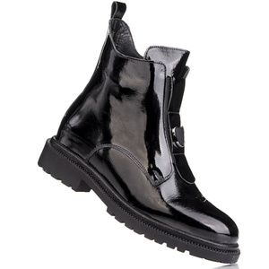 Czarne botki damskie Artiker 55C0787 skórzane podwójny zamek ciepłe