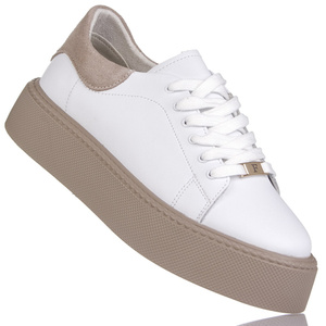 Białe sneakersy damskie Filippo DP6119/25 WH skórzane na platformie