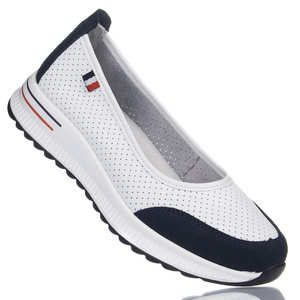 Białe mokasyny ażurowe damskie Barski 673 white/navy skórzane