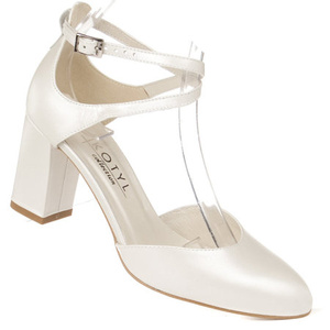 Białe czółenka z paskami Kotyl 7077 biała perła skórzane buty ślubne
