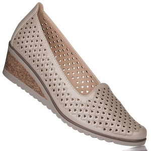 Półbuty ażurowe czółenka na koturnie Potocki 12018BG beżowe