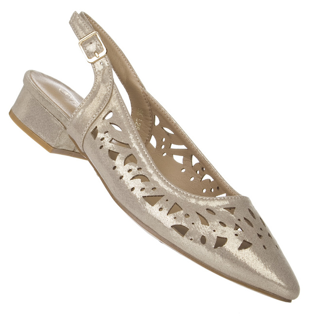 Sandałki czółenka na obcasie skórzane Bioeco Arka 4149 złote