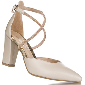 Czółenka na słupku z paskami Prestige 2227 beżowe skórzane z cekinami