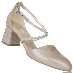 Czółenka z paskiem Prestige 2220 S-127 beżowe skórzane