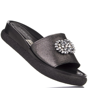 Czarne klapki na platformie skórzane T. Sokolski 749 black z ozdobą