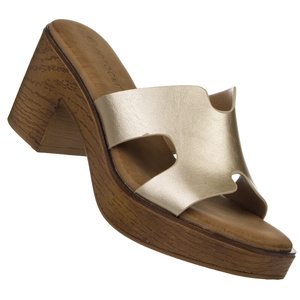 Złote Klapki damskie na obcasie Potocki 21355GD Hermeski