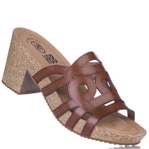 Beżowe klapki na na obcasie skórzane T. Sokolski 708 beige ażurowe