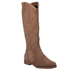 Ażurowe kozaki S. Barski HY51-860 beige zamszowe beżowe