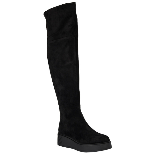 Czarne Kozaki damskie Big Star SS274264 za kolano elastyczne na platformie
