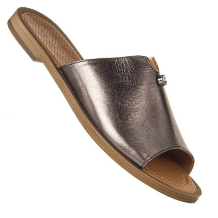 Skórzane srebrne klapki hermeski damskie Marco Tozzi 27108-44 silver