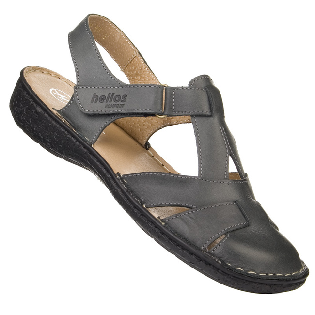 Szare Sandały damskie na rzepy Helios 139 grafit skórzane