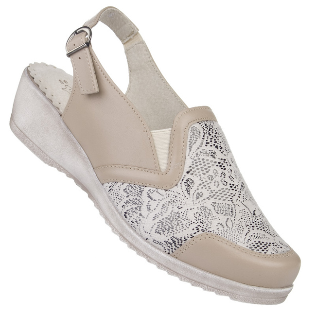 Sandały damskie na koturnie Axel 1904 beżowe wygodne na haluksy
