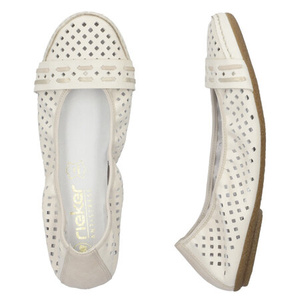 Beżowe baleriny ażurowe skórzane damskie Rieker 41430-60 beige