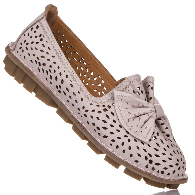 Beżowe mokasyny ażurowe z kokardą Artiker 56C0056 grey półbuty letnie