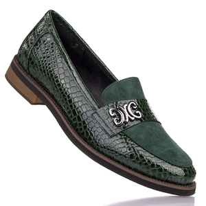Eleganckie półbuty loafersy damskie Potocki 12570 zielone lakierowane