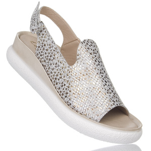 Złote sandały damskie na platformie Contes 644 złoto biały skórzane
