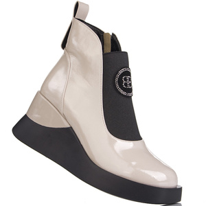 Skórzane Sandały na koturnie damskie Filippo DS6032/25 BE beżowe