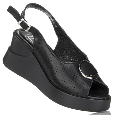 Czarne Półbuty na koturnie damskie Filippo DP6352/24 BK skórzane