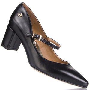 Czółenka z paskiem Prestige 2105/OBL/P K-lico czarne skórzane
